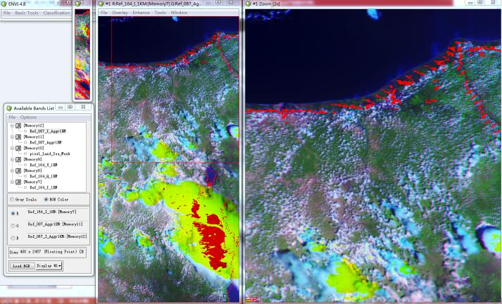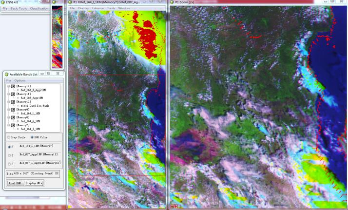 Three channel synthetic color image by CAPI (R=1640,G=870,B=670) show clear texture, distinguishable surface features and reasonable results of geographical location.